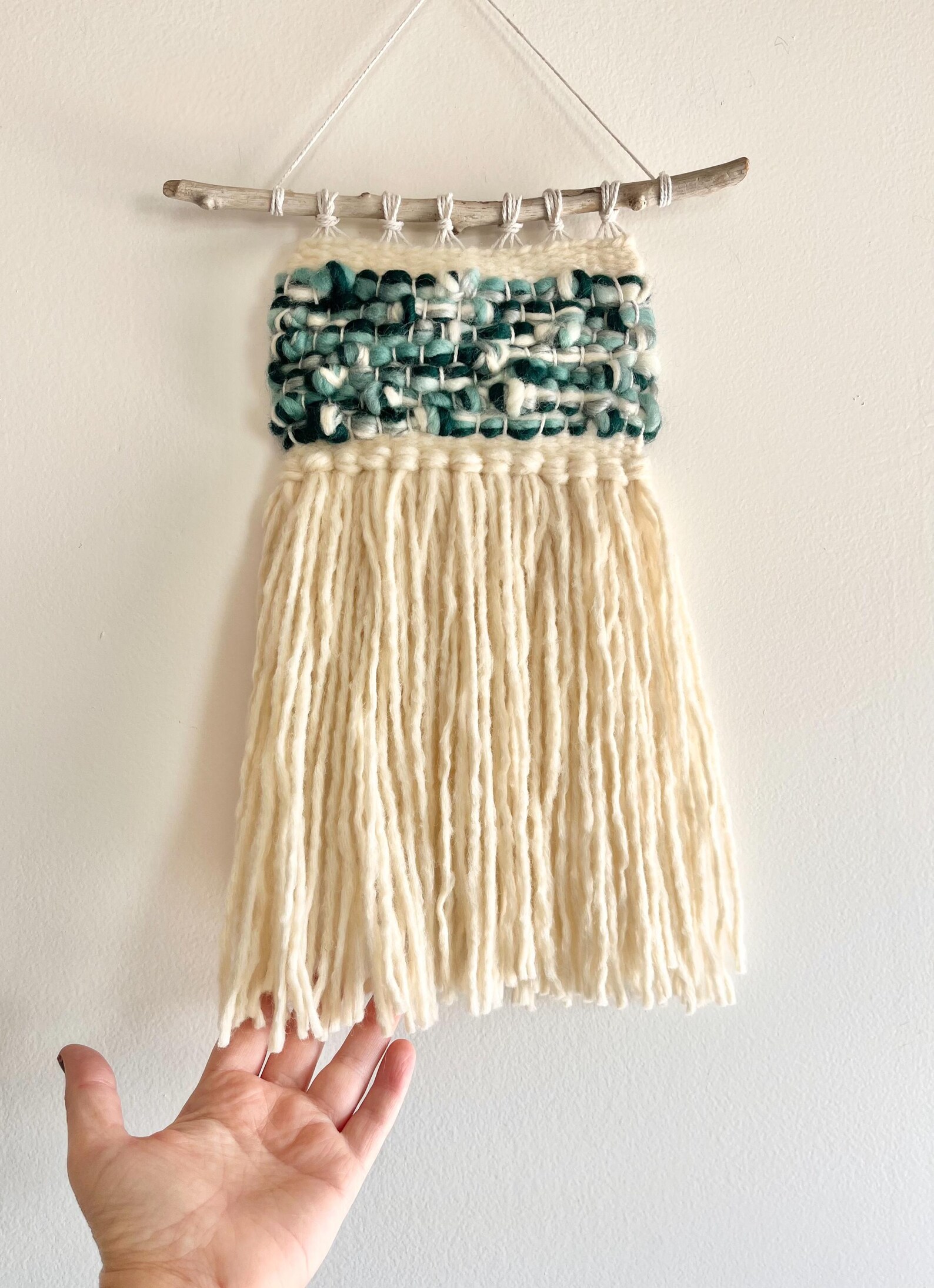 Handmade Woven Blue Green Wall Hanging – One of a Kind Wall Decor